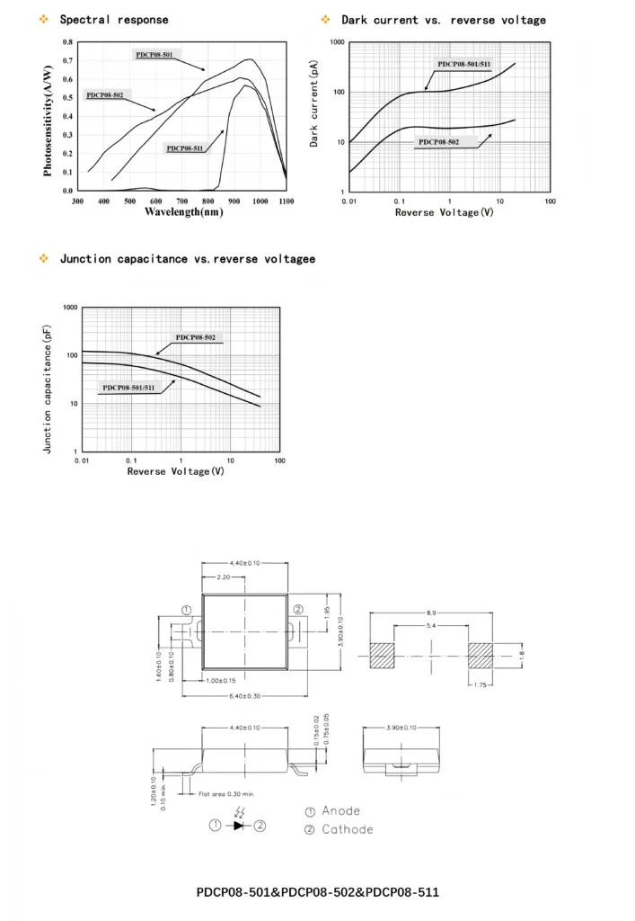 | Dark Current (Id) | Determines your baseline electrical noise floor | Typ: 20 pA, Max: 1000 pA |